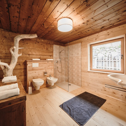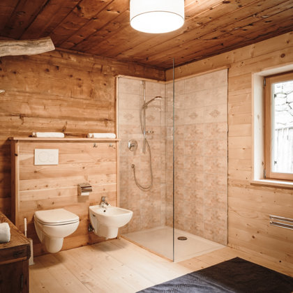Die Ferienwohnung verfügt über eine große Wohnküche mit Ess- und Kochgeschirr für 6 Personen. Sie finden hier zudem einen Holzofen mit Ofenbank, einen Gasherd, sowie einen Kühlschrank. Über eine Holztreppe erreichen Sie das Obergeschoss, welches auch als zusätzlicher Aufenthaltsraum genützt werden kann. Zum Schmökern und Stöbern sind Bücher für Sie da, für Spiele in geselliger Runde haben wir eine kleine Auswahl bereitgestellt. Die Wohnung verfügt über zwei Schlafzimmer und ein Badezimmer mit Dusche und Bidet.